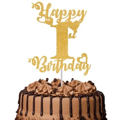 1Pc Happy 1st Birthday Cake Topper Glitter Cheers to 1 Year Fabulous Decoration for Party Decorations Supplies Gold