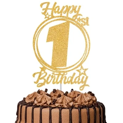 1Pc Happy 1st Birthday Cake Topper Gold Glitter “Cheers to 1 Year Decoration & Fabulous for Women Men Party or Anniversary Decor Supplies