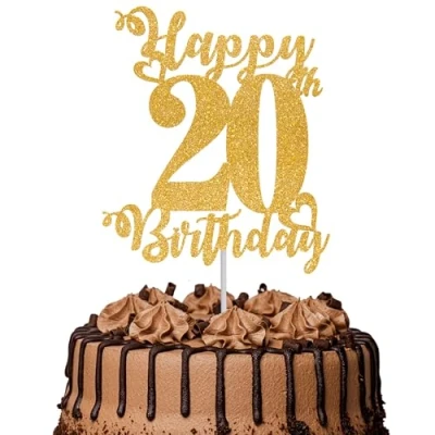 1Pc Happy 20th Birthday Cake Topper Glitter Cheers to 20 Years Fabulous Decoration for Party Decorations Supplies Gold