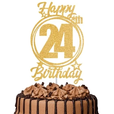 1Pc Happy 24th Birthday Cake Topper Gold Glitter “Cheers to 24 Years Decoration & Fabulous for Women Men Party or Anniversary Decor Supplies