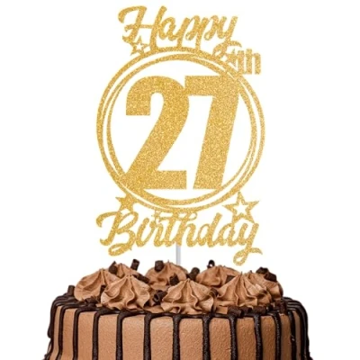 1Pc Happy 27th Birthday Cake Topper Gold Glitter “Cheers to 27 Years Decoration & Fabulous for Women Men Party or Anniversary Decor Supplies