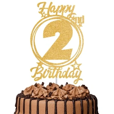 1Pc Happy 2nd Birthday Cake Topper Gold Glitter “Cheers to 2 Years Decoration & Fabulous for Women Men Party or Anniversary Decor Supplies