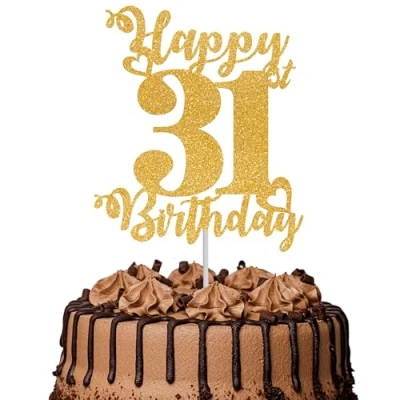 1Pc Happy 31st Birthday Cake Topper Glitter Cheers to 31 Years Fabulous Decoration for Party Decorations Supplies Gold