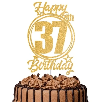 1Pc Happy 37th Birthday Cake Topper Gold Glitter “Cheers to 37 Years Decoration & Fabulous for Women Men Party or Anniversary Decor Supplies
