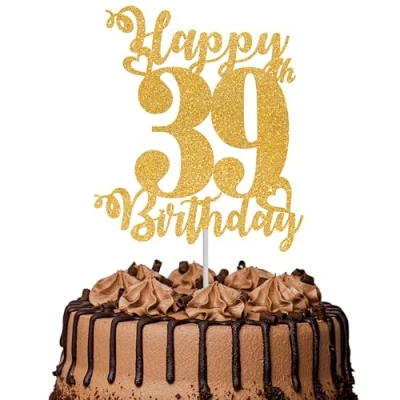 1Pc Happy 39th Birthday Cake Topper Glitter Cheers to 39 Years Fabulous Decoration for Party Decorations Supplies Gold