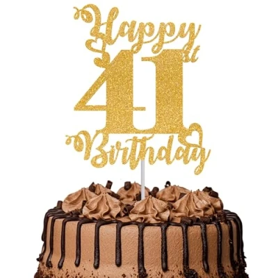 1Pc Happy 41st Birthday Cake Topper Glitter Cheers to 41 Years Fabulous Decoration for Party Decorations Supplies Gold