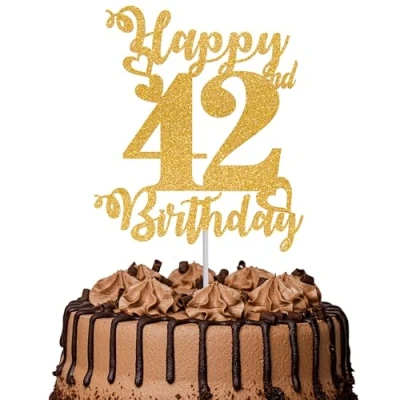 1Pc Happy 42nd Birthday Cake Topper Glitter Cheers to 42 Years Fabulous Decoration for Party Decorations Supplies Gold