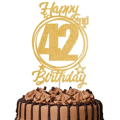 1Pc Happy 42nd Birthday Cake Topper Gold Glitter “Cheers to 42 Years Decoration & Fabulous for Women Men Party or Anniversary Decor Supplies