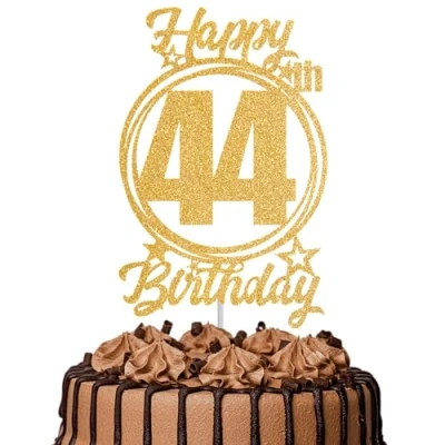 1Pc Happy 44th Birthday Cake Topper Gold Glitter “Cheers to 44 Years Decoration & Fabulous for Women Men Party or Anniversary Decor Supplies
