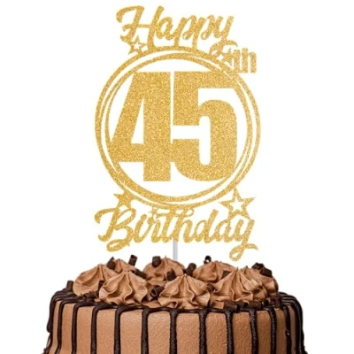 1Pc Happy 45th Birthday Cake Topper Gold Glitter “Cheers to 45 Years Decoration & Fabulous for Women Men Party or Anniversary Decor Supplies
