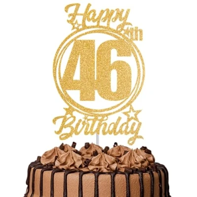 1Pc Happy 46th Birthday Cake Topper Gold Glitter “Cheers to 46 Years Decoration & Fabulous for Women Men Party or Anniversary Decor Supplies