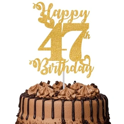 1Pc Happy 47th Birthday Cake Topper Glitter Cheers to 47 Years Fabulous Decoration for Party Decorations Supplies Gold