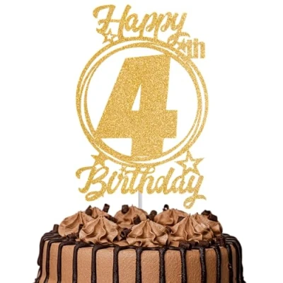 1Pc Happy 4th Birthday Cake Topper Gold Glitter “Cheers to 4 Years Decoration & Fabulous for Women Men Party or Anniversary Decor Supplies