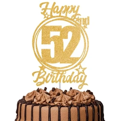 1Pc Happy 52nd Birthday Cake Topper Gold Glitter “Cheers to 52 Years Decoration & Fabulous for Women Men Party or Anniversary Decor Supplies