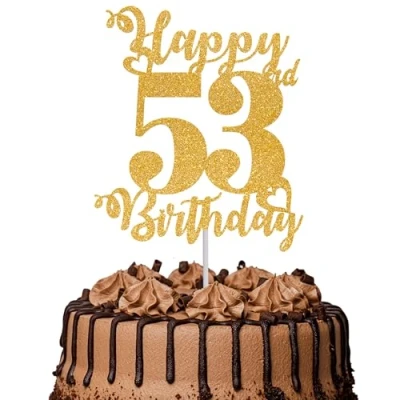 1Pc Happy 53rd Birthday Cake Topper Glitter Cheers to 53 Years Fabulous Decoration for Party Decorations Supplies Gold