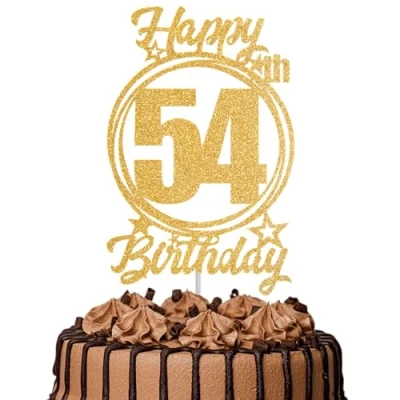 1Pc Happy 54th Birthday Cake Topper Gold Glitter “Cheers to 54 Years Decoration & Fabulous for Women Men Party or Anniversary Decor Supplies