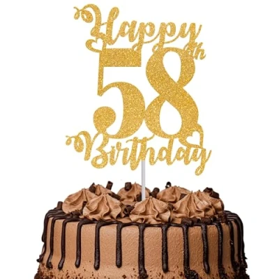 1Pc Happy 58th Birthday Cake Topper Glitter Cheers to 58 Years Fabulous Decoration for Party Decorations Supplies Gold