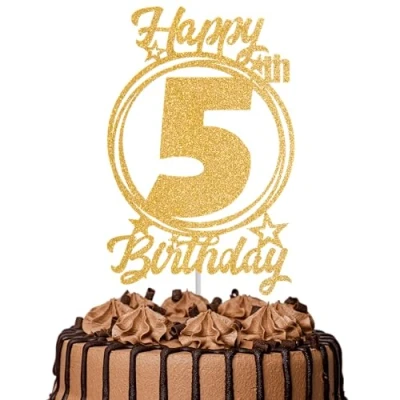 1Pc Happy 5th Birthday Cake Topper Gold Glitter “Cheers to 5 Years Decoration & Fabulous for Women Men Party or Anniversary Decor Supplies