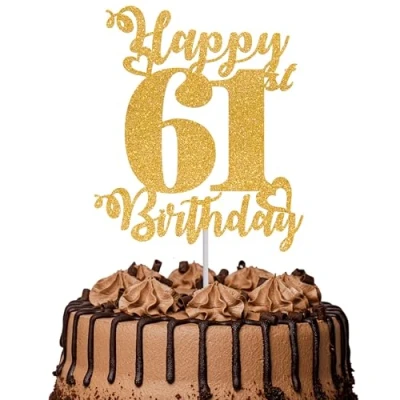 1Pc Happy 61st Birthday Cake Topper Glitter Cheers to 61 Years Fabulous Decoration for Party Decorations Supplies Gold