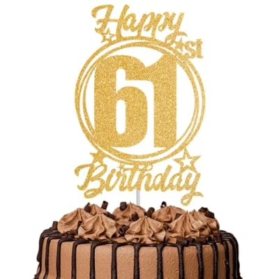 1Pc Happy 61st Birthday Cake Topper Gold Glitter “Cheers to 61 Years Decoration & Fabulous for Women Men Party or Anniversary Decor Supplies