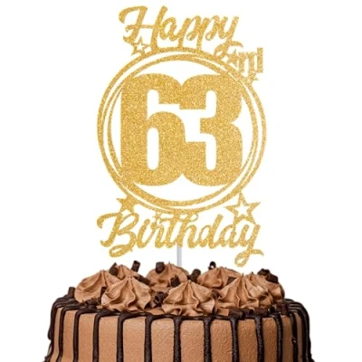 1Pc Happy 63rd Birthday Cake Topper Gold Glitter “Cheers to 63 Years Decoration & Fabulous for Women Men Party or Anniversary Decor Supplies