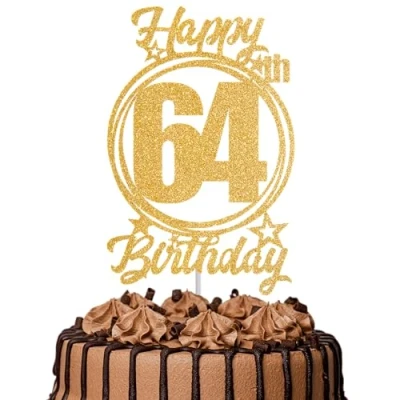 1Pc Happy 64th Birthday Cake Topper Gold Glitter “Cheers to 64 Years Decoration & Fabulous for Women Men Party or Anniversary Decor Supplies