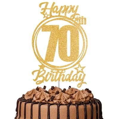 1Pc Happy 70th Birthday Cake Topper Gold Glitter “Cheers to 70 Years Decoration & Fabulous for Women Men Party or Anniversary Decor Supplies