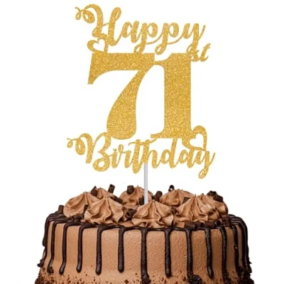 1Pc Happy 71st Birthday Cake Topper Glitter Cheers to 71 Years Fabulous Decoration for Anniversary Party Decorations Supplies Gold