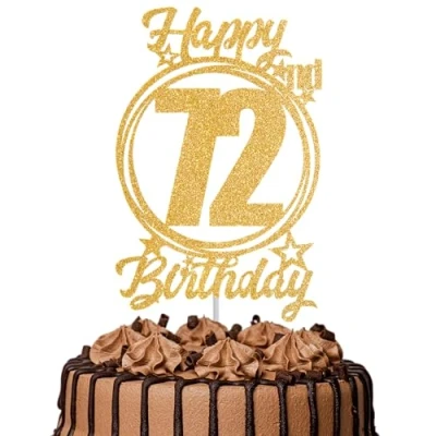 1Pc Happy 72nd Birthday Cake Topper Gold Glitter “Cheers to 72 Years Decoration & Fabulous for Women Men Party or Anniversary Decor Supplies