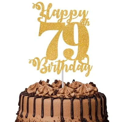 1Pc Happy 79th Birthday Cake Topper Glitter Cheers to 79 Years Fabulous Decoration for Anniversary Party Decorations Supplies Gold