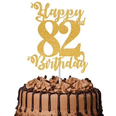 1Pc Happy 82nd Birthday Cake Topper Glitter Cheers to 82 Years Fabulous Decoration for Anniversary Party Decorations Supplies Gold