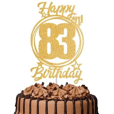 1Pc Happy 83rd Birthday Cake Topper Gold Glitter “Cheers to 83 Years Decoration & Fabulous for Women Men Party or Anniversary Decor Supplies
