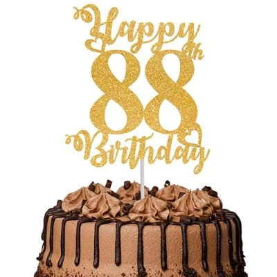 1Pc Happy 88th Birthday Cake Topper Glitter Cheers to 88 Years Fabulous Decoration for Anniversary Party Decorations Supplies Gold