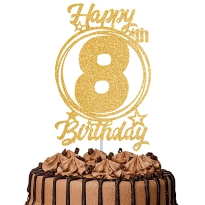 1Pc Happy 8th Birthday Cake Topper Gold Glitter “Cheers to 8 Years Decoration & Fabulous for Women Men Party or Anniversary Decor Supplies
