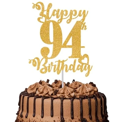 1Pc Happy 94th Birthday Cake Topper Glitter Cheers to 94 Years Fabulous Decoration for Anniversary Party Decorations Supplies Gold