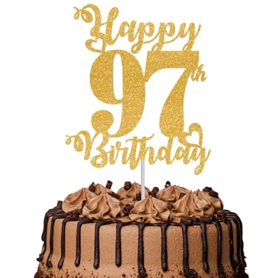 1Pc Happy 97th Birthday Cake Topper Glitter Cheers to 97 Years Fabulous Decoration for Anniversary Party Decorations Supplies Gold