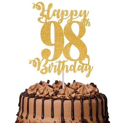 1Pc Happy 98th Birthday Cake Topper Glitter Cheers to 98 Years Fabulous Decoration for Anniversary Party Decorations Supplies Gold