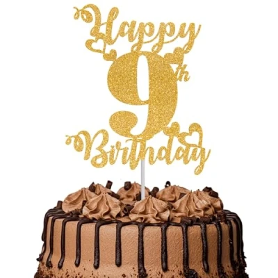 1Pc Happy 9th Birthday Cake Topper Glitter Cheers to 9 Years Fabulous Decoration for Party Decorations Supplies Gold