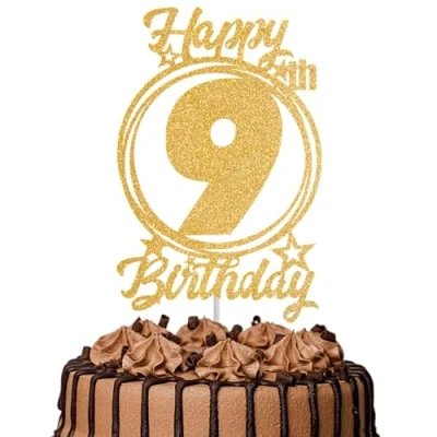 1Pc Happy 9th Birthday Cake Topper Gold Glitter “Cheers to 9 Years Decoration & Fabulous for Women Men Party or Anniversary Decor Supplies