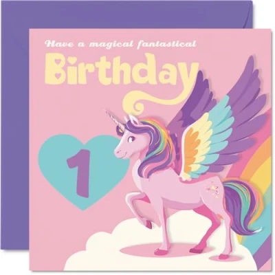 MAKE HER SMILE WITH THIS UNIQUE BIRTHDAY CARD: This exceptional quality birthday card for her shows the design 'Have a Magical fantastical birthday 1'. If you are looking for special birthday greetings cards for Girls birthday card then then this happy birthday card is bound to make her smile. Not just for birthday gifts for Girls this could also be for Granddaughter, Step Daughter, Goddaughter, Sister, Cousin, Daughter, Niece or Great Niece. WHAT DO YOU GET: The card is printed on one side and BLANK ON THE INSIDE to allow you to write your very own message. The unique fun design is printed on a specially sourced and environmentally responsible board. At 360 microns thick the natural white one-sided gloss board has a quality look and feel. Supplied with a coloured gummed envelope to complement the design and ready to be sealed and sent in the post. Great Granddaughter birthday cards, 1st birthday card, Step Daughter birthday card. DESIGNED FOR WRITING: There is nothing worse than writing inside a card to find that the shiny surface makes the ink smudge. This is why we use a high quality one sided coated board. The uncoated side will absorb more of the ink from your pen to make smudging a thing of the past. 1st Birthday card for Goddaughter, 1st Birthday card for Sister, 1st Birthday card for Cousin. SIZES: Greeting Card = 145mm x 145mm, Envelope = 155mm x 155mm, Card Thickness = 360 micron. Daughter 1st birthday card, birthday cards for Niece, cute birthday cards for Great Niece, 1st birthday card Granddaughter, Step Daughter 1st birthday card. MADE AND QUALITY CHECKED IN THE UK: We print and manufacture all our products right here in the UK so you can be sure of a fast turnaround and a product that is expertly made. Using environmentally responsible premium board our card is conscious of the responsible management of the world's forests - perfect birthday cards for Girls, fun birthday cards for her, Step Daughter 1st birthday cards, female birthday cards.