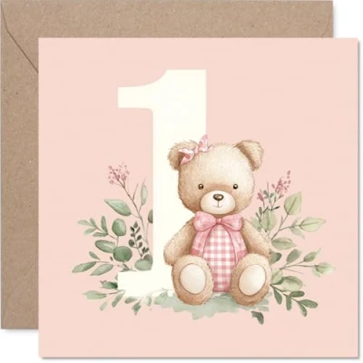 MAKE HER SMILE WITH THIS CUTE BIRTHDAY CARD: This exceptional quality birthday card for her shows the design 'Number Bears'. If you are looking for special birthday greetings cards for Girls birthday card then then this happy birthday card is bound to make her smile. Not just for birthday gifts for Girls this could also be for Step Daughter, Daughter, Sister, Niece, Granddaughter, Great Niece, Goddaughter or Cousin. WHAT DO YOU GET: The card is printed on one side and BLANK ON THE INSIDE to allow you to write your very own message. The unique fun design is printed on a specially sourced and environmentally responsible board. At 360 microns thick the natural white one-sided gloss board has a quality look and feel. Supplied with a coloured gummed envelope to complement the design and ready to be sealed and sent in the post. Great Step Daughter birthday cards, 1st birthday card, Daughter birthday card. NO INK SMUDGES: There is nothing worse than writing inside a card to find that the shiny surface makes the ink smudge. This is why we use a high quality one sided coated board. The uncoated side will absorb more of the ink from your pen to make smudging a thing of the past. 1st Birthday card for Sister, 1st Birthday card for Niece, 1st Birthday card for Granddaughter. SIZES: Greeting Card = 145mm x 145mm, Envelope = 155mm x 155mm, Card Thickness = 360 micron. Great Niece 1st birthday card, birthday cards for Goddaughter, cute birthday cards for Cousin, 1st birthday card Step Daughter, Daughter 1st birthday card. MADE AND QUALITY CHECKED IN THE UK: We print and manufacture all our products right here in the UK so you can be sure of a fast turnaround and a product that is expertly made. Using environmentally responsible premium board our card is conscious of the responsible management of the world's forests - perfect birthday cards for Girls, fun birthday cards for her, Daughter 1st birthday cards, female birthday cards.