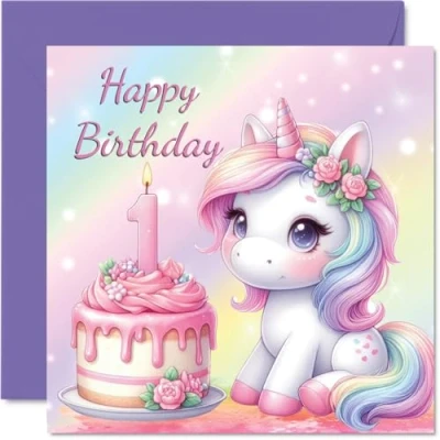 1st Birthday Cards for Girls Unicorn Cake Happy Card 1 Year Old Girl Goddaughter Sister Step Daughter Granddaughter, 145mm Bday Greeting