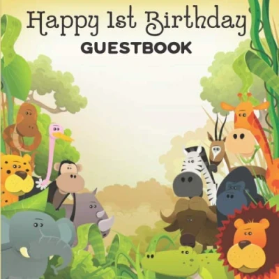 1st Birthday Guestbook: Jungle Zoo Animals Party Themed Celebration Guest Book