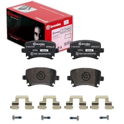 1TD698451 brake pad set BREMBO P 85 073X prepared for wear indicator with caliper screws accessories VOLKSWAGEN: Golf 5, Passat B6 Saloon