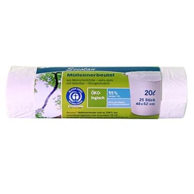 25 bin liners made from 100% regenerated material - for household waste, paper and cardboard waste in the office, plastic waste, recycling waste, residual waste. Extra tear-resistant for clean transport and hygienic disposal of the full bin bag. Extra strong, resilient and drip-proof thanks to COEX film (multi-layer film). Film thickness: 25 µm Made from recycled LDPE - to conserve natural resources. Produced in the EU, Weight: 0.5732018812 pounds, Manufacturer: Secolan