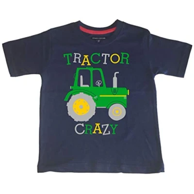 2 3 Years Navy T Shirt Tractor Crazy (Design 5) with Green, Silver & Yellow Print