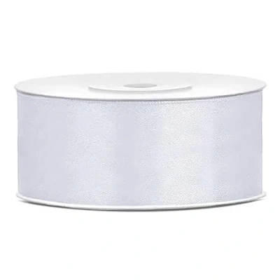 2.5 cm White Double Satin Ribbon Roll Spool Thickness 25 m for Wedding, Christening, Christmas, New Year, Gift Idea