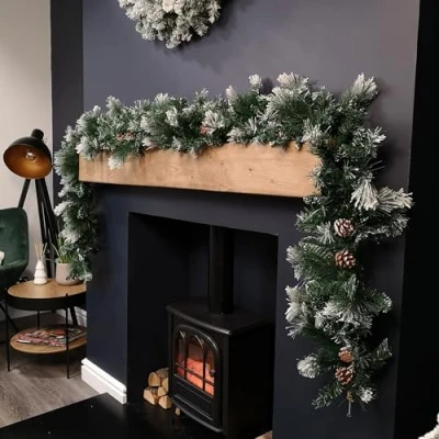 AmazonWinter Wonderland Effect: The delicate snow flocking adds a frosty, snow-covered look, bringing the beauty of a winter landscape indoors to your decor. Mixed Needles: A blend of pine and spruce needles gives this garland a multi-dimensional, lifelike texture, enhancing its natural appeal and creating a more authentic festive atmosphere. Festive Pinecones: The charming pinecones scattered throughout the garland add a rustic, woodland feel, giving it that perfect touch of seasonal charm. Full & Lush Design: With 195 PVC tips, this garland boasts a thick, voluminous appearance that provides a beautiful, full-bodied look to any space. Perfect for Indoor & Sheltered Outdoor Use: Ideal for indoor spaces and sheltered outdoor areas such as covered porches or patios, this garland brings festive charm to both home and garden.