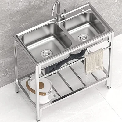 Freestanding Utility Sink -Freestanding stand highly improves the efficiency of kitchen work and the feet can be adjusted to adapt to uneven ground, suitable for outdoor and indoor use. the raised rim around the sink to keep water from spilling. Rounded edge design avoids injury. Kitchen Sink Complete Set - The stainless steel sink comes with drain device and cold and hot water faucet with 2 hoses, no other accessories are needed, the complete set is more convenient. Drain device with removable strainer can prevent food and debris from clogging and premium stainless steel makes it rustproof with a long use life. Tall faucet with hot and cold water hoses offers you ample washing space, and single handle design for easy switching between hot and cold water. Premium Stainless Steel Sink - The entire sink and stand made of heavy duty stainless steel is rustproof and corrosion-resistant. With polished surface and R round corner, it won't hide any dirt.stainless steel makes it have strong load-bearing capacity and withstand rapid use in commercial kitchens. Best choice for home, restaurant, bar, hotel, cafe and so on. Easy Cleaning & Installation - Polished surface is scratch-resistant and dirt-resistant, easy to clean. X-shaped diversion lines speed up drainage without water accumulation. After-sales Service - please contact us first if there is any quality problem. With professional online service team, we will reply within 24 hours., Manufacturer: MiaJJooLi