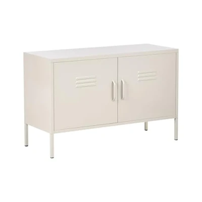 2 Door Sideboard Light Beige Steel Home Office Furniture Shelves Leg Caps Industrial Design URIA